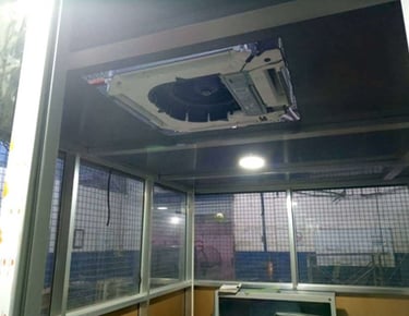 Fourniture et pose d’une cassette de 24000BTU, 4 extracteurs d’airs et parois en alu plein et vitré site AGL LIMETE/AIR France/2024